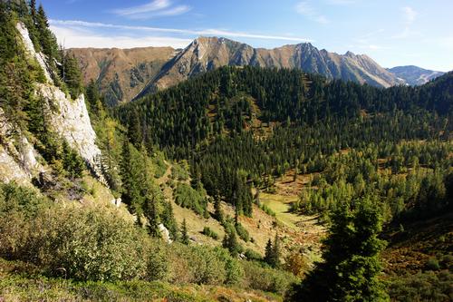 Blick hinunter zur Grünwaldkaralm.