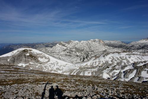 | Blick nach Norden. Rechts der Bartlrücken, links das Scheiblingtragl. In Bildmitte das Tourengebiet vom 26.07.2007: Hochweiß, Plankermira und Weiße Wand. |