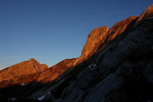 Traweng (links) und Sturzhahn (rechts) in der "glühenden" Morgensonne.