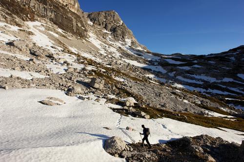 Die Schneefelder sind mit Vorsicht zu genießen, und man tut gut daran, die Warnungen zu befolgen, unbedingt am markierten Weg zu bleiben.
