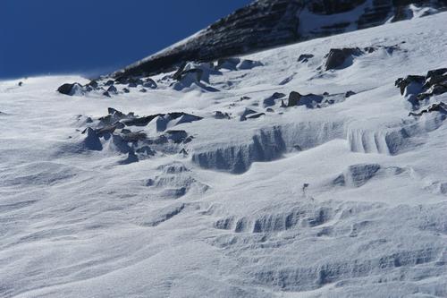 Der kalte Wind treibt immer wieder Schneekristalle über den Boden.