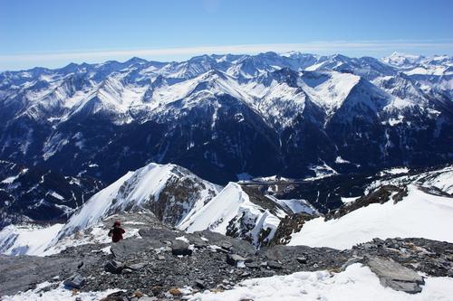 Ingrid hat sich etwas unterhalb des Gipfels hinter einem Felsen vor dem schneidigen Wind in Sicherheit gebracht.