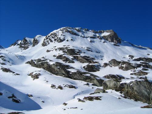 Zurück im Fuchskar - der Schnee wurde hier bereits etwas patzig. Einige Gegensteigungen, die wir "brettelnderweise" bezwingen, bringen uns noch einmal zum Schnaufen und Schwitzen.