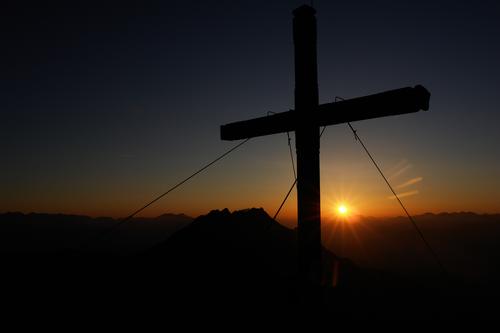 Das Gipfelkreuz und die Sonne - einmal rechts ...