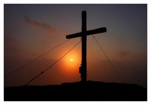 Und so darf ich eine wunderschöne Lichtstimmung beim Gipfelkreuz erleben.