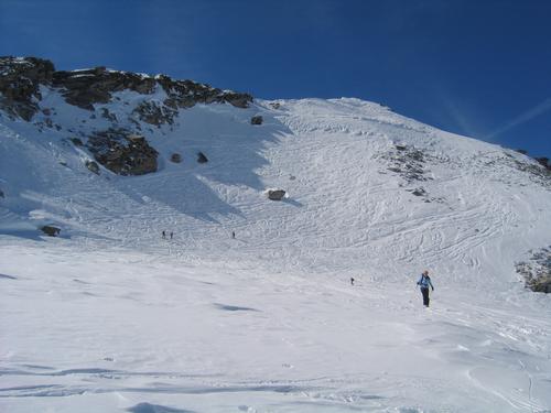 Der Schnee am Sonnblickkees ist so mittelmäßig. Windgepresst, teilweise Bruchharsch, kein richtiger Pulver und auch kein Firn.