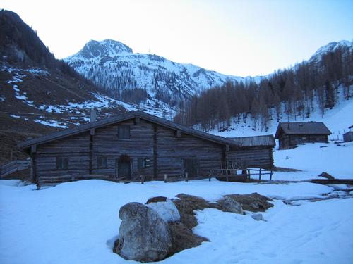 Aufstieg entlang der Sommermarkierung über die Almstraße zur Unteren Pleißlingalm. Ab der Alm beginnt die geschlossene Schneedecke.