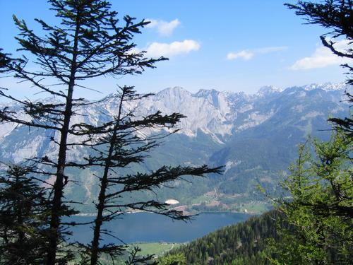 Vom breiten Kamm erhascht man die ersten Ausblicke auf den Grundlsee im Norden.