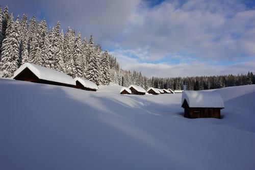 Die Hütten nacheinander wie auf einer Perlenkette aufgefädelt.