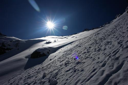 Einmal steiler, und durch die harten "Schneebälle" schön griffig ...