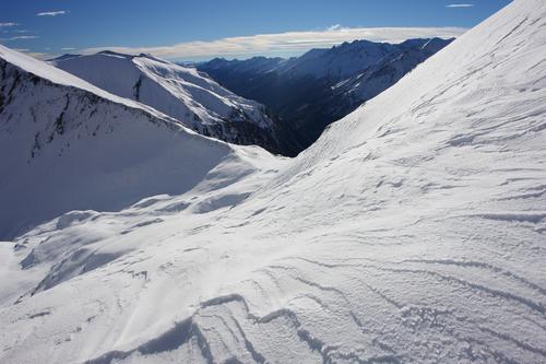 | In Bildmitte die Riedingscharte. Links zieht der Grat auf das Weißeck hinauf. Der steilere Teil liegt hinter mir ... |