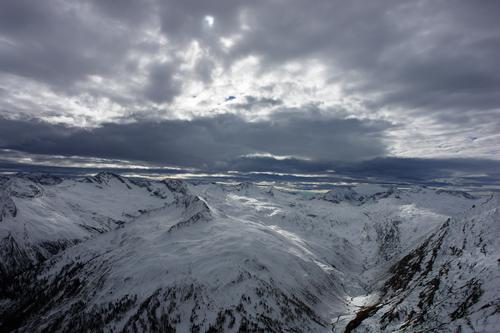 | Am Himmel wird es zunehmend dunkler, und so steige ich nach nur kurzer Pause wieder ab. |