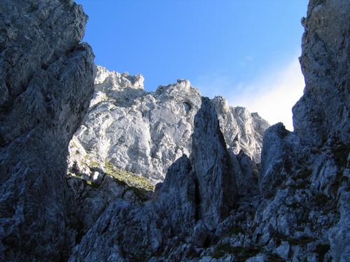 | Eine kurze, etwas schwierigere Kletterstelle (III) läßt sich beinahe lächerlich einfach umgehen (wie ich erst beim Abstieg merke). |