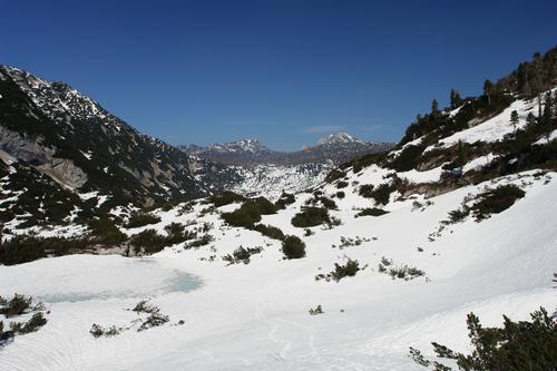 Beim kleinen (laut Karten namenlosen) Seelein nahe des Hochklapfsattels (links unten) - Blick zum Großen Woising rechts hinten.