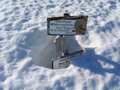 Da muß noch viel schmelzen, bis die Wegweiser wieder zur Gänze freigegeben werden.