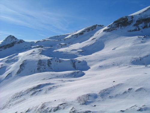 | ... also beschloß ich, mir eine Route im verlockend aussehenden Gelände östlich des Gipfels zu suchen, um schließlich über die Südostseite zum Gipfelkreuz zu gelangen. |