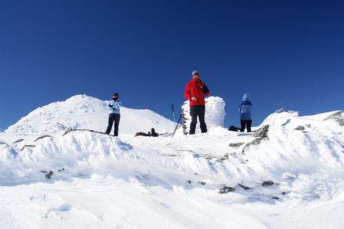 | Die Kameraden legen in der Nähe der Fraganter Scharte eine Pause ein. Murmeltieren auf Wachposten gleich, halten sie Ausschau in alle Richtungen. |