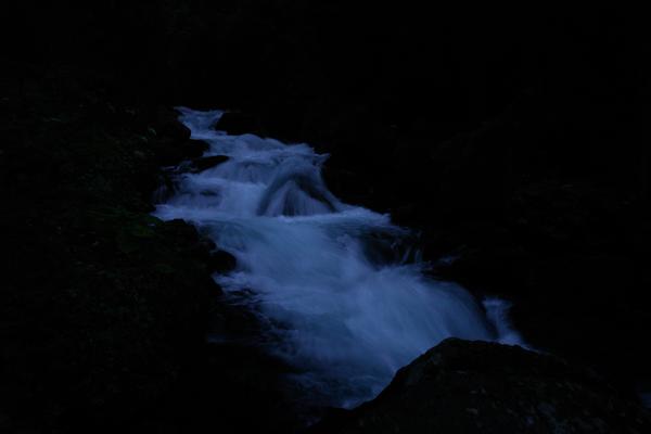 Neben dem rauschenden Bach geht es nahezu eben auf gutem Steig Richtung Süden. Stellenweise schwappt das Wasser auf den Weg über.