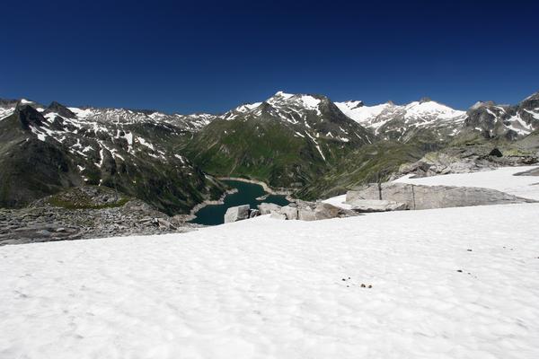 Blick zurück zum Ankogel. Einige Schneefelder müssen überquert werden ...