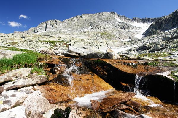 | Die kleineren Bächlein, Rinnsale und Wässerchen, die sich im großen Kessel zwischen Frauennock, Marchkareck und Schöderhorn sammeln, verschwinden zwar wieder unter den Steinen. Spätestens 400 Höhenmeter weiter unten gibt es aber kein Halten mehr, und die kleine, junge Mur erblickt endgültig das Licht der Welt ... |