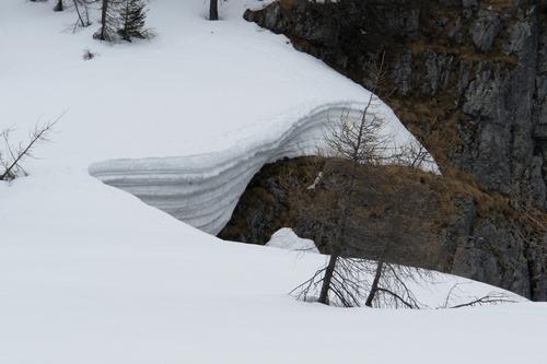 Beinahe senkrecht brechen die überwechteten Weißenbacher Mauern ins Tal ab.
