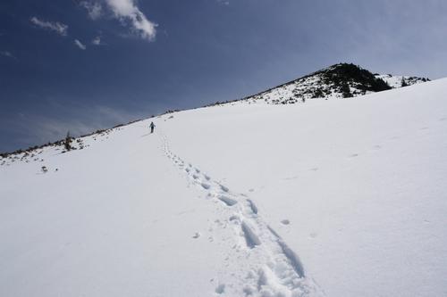 Über steilere, wunderschöne Schneehänge hinab zu den ersten Bäumen ...