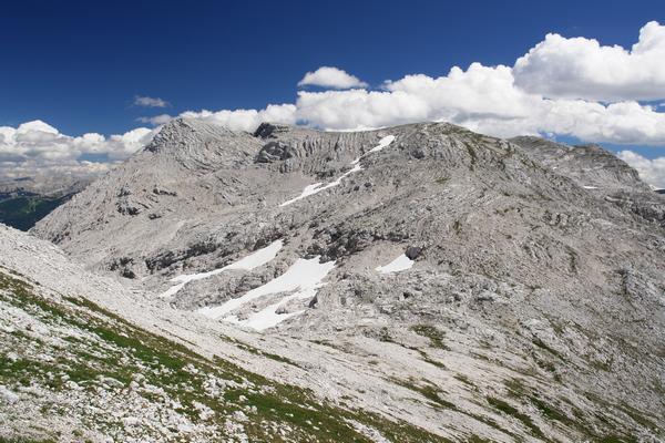 Weiter unten geht es über gut begehbare Schuttbänder weiter - hinab in den Bösenbühelsattel ...