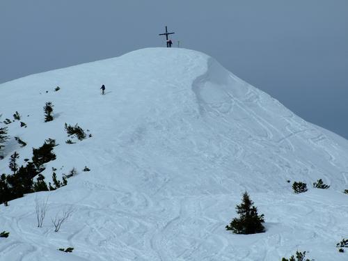 | Bald ist das Gipfelkreuz am Frommerkogel erreicht. Warum die Sommermarkierung laut Wegtafeln mit Schwierigkeit ROT eingestuft ist, bleibt mir ein absolutes Rätsel. Viel einfacher kann ein Gipfelanstieg fast nicht mehr sein. |