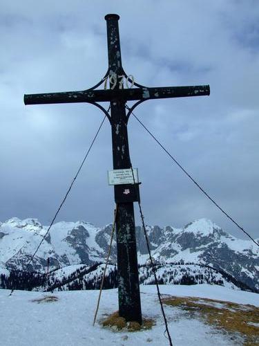 Beim etwas schiefen Gipfelkreuz am Frommerkogel.