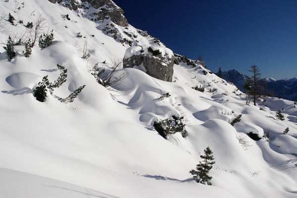 Schließlich bin ich aber trotz einiger "Rutschereien" im südseitig etwas patzigen Schnee gut unten angekommen ...