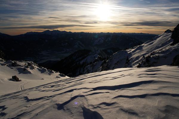 Und am Horizont erkenne ich die heimatlichen Gipfel in den Schladminger Tauern um Hochwildstelle und Höchstein (rechts hinten).