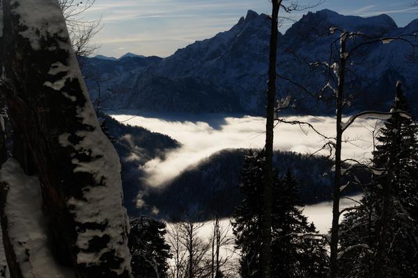 Fasziniert beobachte ich, wie der Nebel richtiggehend zu fließen scheint.
