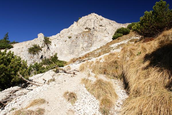 Der Weg - steinig, aber unschwierig. Noch ist es warm, in der Gegensonne ...