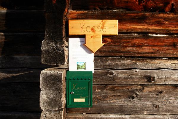 | Eine Kassa - für 3 Euro darf man sich bei Saft, Radler oder Bier selbst bedienen - ich hätte heute gerne gezahlt. Leider war alles "ausverkauft". |