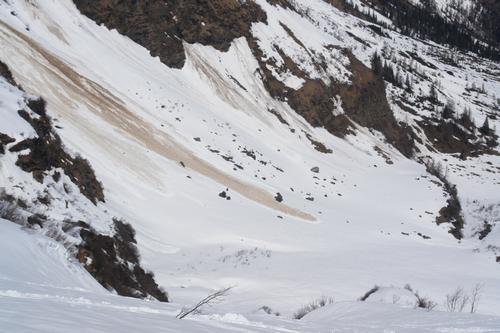 Über die kurze Steilstufe hinunter zu einer Lawine ...