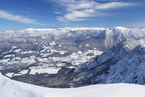 Blick Richtung Osten zum Sarstein (rechts). Links daneben verläuft die Straße über den Pötschenpaß. Im Hintergrund die Gipfelparade des Toten Gebirges.