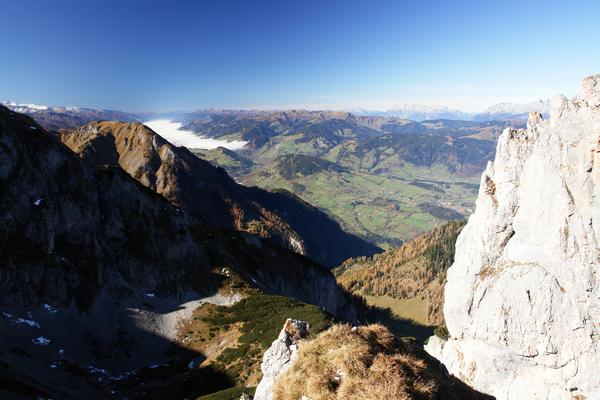 Im Salzachtal beginnt sich die Nebeldecke langsam aufzulösen.