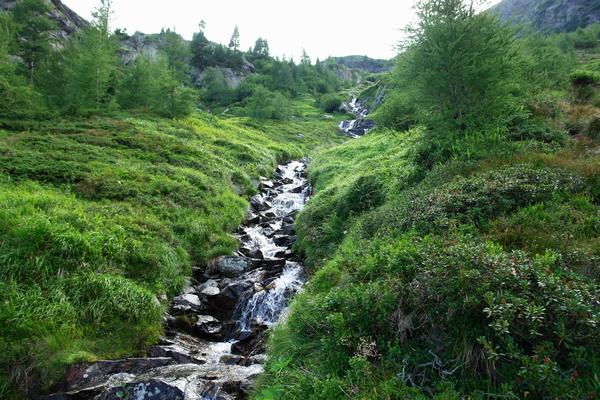 Neben dem Bach steigt man in Schwarzbeerschlägen höher - nicht ohne gelegentlich an den köstlich-süßen Beeren zu naschen.