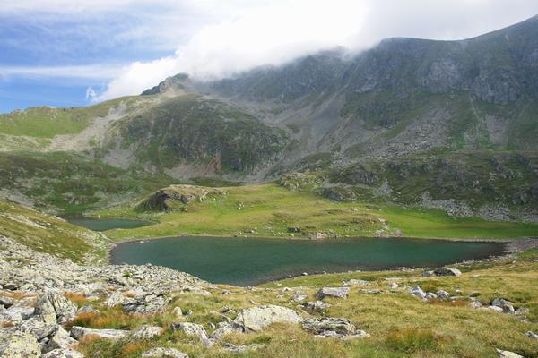 | Der Hundstein, den wir an den Granierseen vorbei weglos über den steileren Westhang rechts der Bildmitte ersteigen wollten, war leider die meiste Zeit gänzlich verhüllt. |