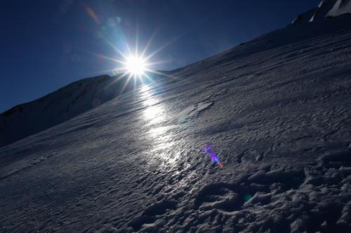 | Ich bin froh, endlich in die Sonne zu kommen. Nur wärmen vermag sie mich in der Früh noch nicht, auch wenn ich mich noch in windgeschützten Gefilden bewege. |