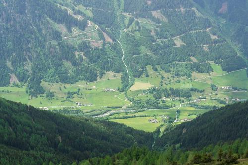 Tiefblick auf den gar nicht so schmalen Taleinschnitt um Hinterwald auf der Kleinsölker Seite ...