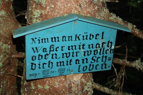 ... verspricht eine Tafel dem fleißigen Träger Hochprozentiges.