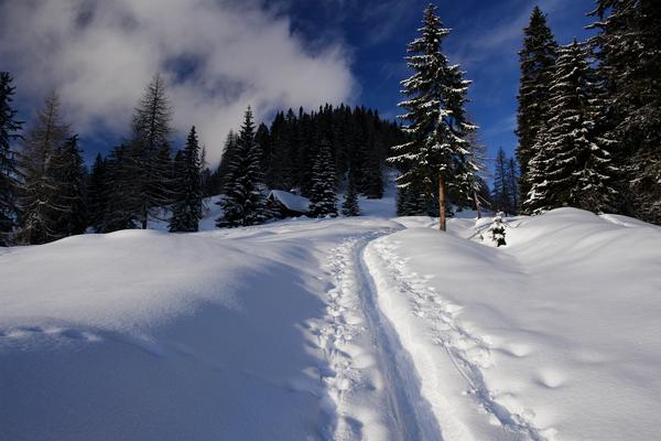 | Die Route über die Langpoltenalm und dem Grazer Steig zur Hochmölbinghütte war bestens gespurt. Bei unserer Aufstiegsroute zum Hochtor gab es allerdings nur eine einzige Spur eines einsamen Schneeschuhwanderers. |
