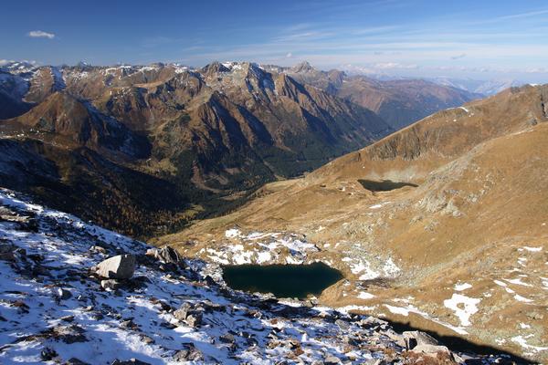 Die Seen unten im Seekar - westlich der Gratverbindung vom Schafdach zum Krautwasch - erreigen meine Aufmerksamkeit.