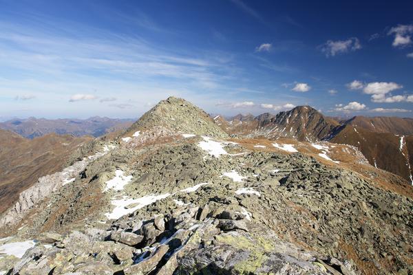 | Also entschließe ich mich kurzerhand, heute noch einen Gipfel zu besuchen. Ich war ziemlich verwundert, als ich in dieser vermeintlich einsamen Gegend plötzlich Stimmen vernehme. 2 Wanderer, die am Vortag über Donnersbachwald aufgestiegen waren und in den Bergen biwakiert hatten, kamen mir entgegen. |