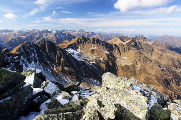 Ausblick vom Melleck Richtung Nordwesten zur Gipfelkette, die vom Schafdach bis zum Unholding zieht.