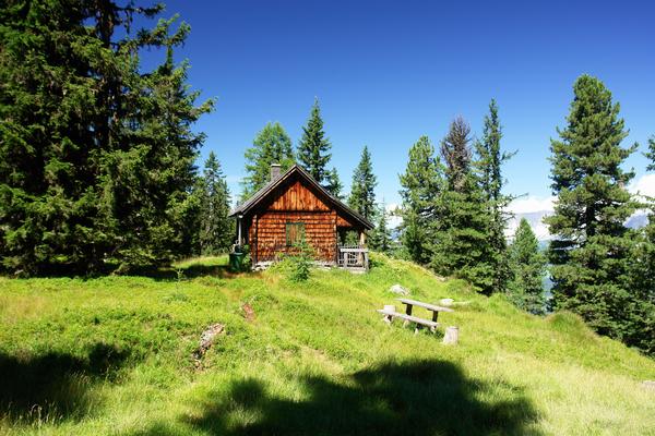 An einer idyllisch gelegenen Jagdhütte vorbei.