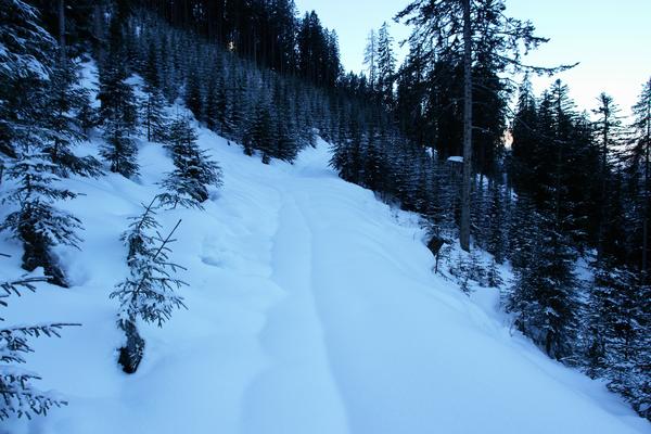 Bei einer Höhe von etwa 1.340 Meter verlasse ich die Forststraße und zweige nach rechts auf einen Ziehweg ab.