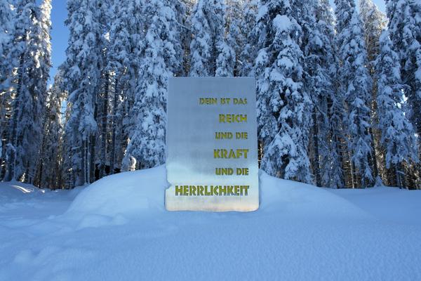 ... und die umliegenden Skulpturen und Tafeln zu studieren.