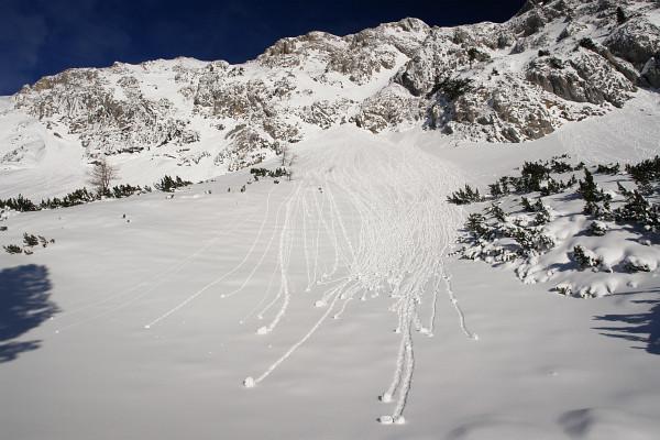 | Bei vernünftiger Routenwahl würde ich diese Tour - von Extremsituationen abgesehen - als ziemlich lawinensicher bezeichnen. Den Südwesthängen des Kufstein sollte man natürlich ebenso wenig zu nahe kommen, wie den häufig eingewehten Osthängen der Luserwand. |